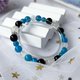 **【霜月】天然藍磷灰 黑瑪瑙 藍月亮石 玉髓 S925純銀 設計手鍊**