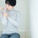 内側に折るのも首元がすっきりとしてお勧めです。年齢関係なく多くの方のベーシックとなれるセーターです。