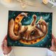This whimsical orange cat painting was made with professional acrylic paints on a stretched cotton canvas. The artwork is unique - what a joy to rest on the cheese crescent and play with a magic mouse by a fluffy paw :) The artwork is original, highly detailed, and absolutely fairy. The plot is one of a kind.