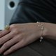 • 黃銅電鍍 14K 真金手鏈 (Brass with 14K Gold Plated Bracelet):鏈條與墜飾完美呼應整體設計。 / Chain and charms harmoniously match the overall design.