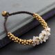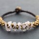 這是手工編織的深棕色棉蠟線與玫瑰石英石和黃銅珠編織在一起的手鐲。關閉使用銅鐘