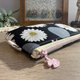 - 以黑底布料襯托白色雛菊,低調中帶著溫柔光感,點綴灰色圓點,讓整體更顯沉靜而耐看。柔軟鋪棉手感,適合收納耳機、零錢、唇膏等日常小物。輕巧扁身設計,讓包包保持清爽有序。「暮黑雛菊」,像黃昏時分靜靜盛開的小花,陪你走過每一天。