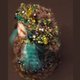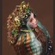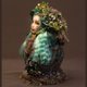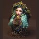 头部由聚合物粘土雕刻和手绘。 尸体被缝制和填充。 有一个木制底座可以帮助娃娃站好。