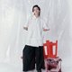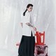 這款襯衫展現了服裝設計中的獨特融合,不僅結合了傳統中式廚師服的風格和日式和服的版型,同時加入了西式的結構元素,設計上將左側門襟下擺解構成不對稱類擋片結構,右側腰間的綁帶設計,可以將左身片綁至右側,也可以解開綁帶,實現自然垂墜的效果,這為襯衫的穿著風格提供了多種變化;而左身片下襬處設有一個機能型的大口袋,並於口袋處加入袋蓋和拉鍊,不僅能達到防盜效果,也能增添整體服裝的層次感。