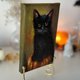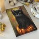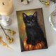This cute black fluffy kitten sitting on a pumpkin was painted with professional acrylic paints on a stretched cotton canvas. The unique and fairy artwork to treat Your wall. It will bring a special atmosphere to any home. Great gift for cat lovers.