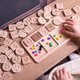 - The wooden math game board is perfect for learning addition and subtraction early in preschool age. This toy, which is included in Wooden Mathematics materials, is completely natural and made of beech and walnut trees. It is harmless to health and does not contain any glue, paint or toxic substances.