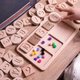 The wooden math game board is perfect for learning addition and subtraction early in preschool age. This toy, which is included in Wooden Mathematics materials, is completely natural and made of beech and walnut trees. It is harmless to health and does not contain any glue, paint or toxic substances. This wooden math game consists of 47 pieces and includes 2 sets of square wooden numbers from 0 to 10 to use for operations and 1 set of round wooden numbers from 0 to 20 to use in the conclusion section, 3 math signs (addition, stickers and equals) and 40 pompoms.