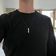- Elegant rotated bar shape pendant in hypoallergenic 925 Sterling Silver. Each pendant is sold with an 70/80cm black cord that fits all sizes or, alternatively, a 50cm titanium steel chain. Designed in Italy.