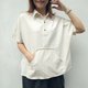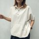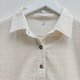 - 襯衫領短袖米色上衣木紐扣 簡單但很酷