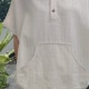 设计: 翻领、前襟两颗椰壳钮扣、前口袋设计、宽松版型