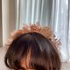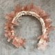 這款「花環」頭飾是由歐根紗 製成的,只要戴在頭上,就能輕鬆打造出美麗的髮型。它的顏色是啡色系的織紗,營造出一種優雅而自然的風格。