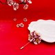 設計特點:採用四朵皮革桃花垂吊在襟針上,突顯桃花優美的形態及充滿生氣跳躍的動感