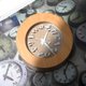 光落在鬧鐘身上,數字的影子落在牛皮紙的面板上