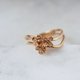 這是一款帶有3種花朵的雙拋光金色戒指。每朵花都有一個清晰明亮的藍茵石。1979年由AVON珠寶推出,命名為:FLOWER BRIGHTS。著錄於AVON JEWELRY 第171頁中。我們主觀認定,狀況近新品,幾乎沒有使用痕跡。