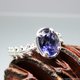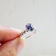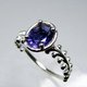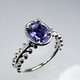 鮮やかなパープルの石を、ボタニカルなイメージのリングにセッティングしました。
