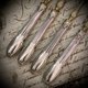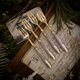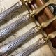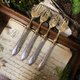這一組來自19世紀末的法國甜點前菜叉,手柄刻有象徵純銀的「密涅瓦印記(Minerva)」——代表法國銀器工藝的正統印記。