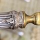 手柄為純銀製成,凹槽線條與月桂飾帶展現出路易十六風格的端莊古典氣息;使用面則為拋光黃銅,歷經歲月仍保留柔和的金屬光澤。這種「銀柄+黃銅面」的混合工藝,正是19世紀晚期甜點餐具的典型設計,是屬少見但具實用收藏價值的餐具類型。