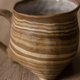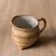 黃陶和白陶經過練土、混土、拉坯、修坯成形,完成攪胎作品。每一件攪胎作品都有不同的紋路。沒有上釉的抷體在經過釉燒後,再經過研磨,讓使用者能夠觸摸到陶土的肌理。這件作品燒成溫度為1230度。