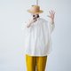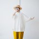 - 皺褶紋理白 襯衫領口,縮口袖 無口袋 每一件剪裁圖案都不相同,介意者請勿購買 尺寸 胸寬 (cm)60 肩寬 (cm)65 衣長 (cm)85 袖口寬(cm)13 腋下寬(cm)40 袖長(cm)35