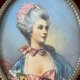 這幅百年的迷你手繪肖像畫,出自法國工坊畫師之手,以極細筆觸描繪十八世紀洛可可風格的貴族仕女。畫面柔和細膩,光暈層次豐富,呈現出該時期藝術中對優雅與浪漫的極致追求。