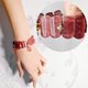 草莓晶精工磨製**曲面排狀**珠飾,編製為手排,寶石間點綴鑽花K金配飾,不僅時尚浪漫美麗,更有有**節節高升、高風亮節**之美意。