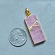 此手工項鍊/吊墜靈感源自日本古法金繼工藝——以黃金修復破損之物。天然寶石經純金箔修復,鑲嵌於22K鍍金實心銀座。每件作品皆象徵著韌性、蛻變與不完美之美。(每顆矩形粉晶皆為獨一無二,擁有獨特的天然裂痕與黃金修補痕跡。