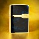 此款防風打火機採用高拋光機身並透過色彩成像技術,在機身正面設計區塊呈現高質感的海藍色大理石紋路,配合金色邊框與ZIPPO的雕刻字樣,展現低調奢華的樣貌。