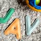 - 每個字母可選不同顏色,縫線均為白色