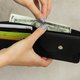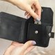 這款口袋錢包非常實用,可容納鈔票、信用卡和名片,還有一個用於存放硬幣的口袋。迷你錢包採用金屬紐扣閉合。