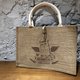 ▩ 天然黃麻材質 /可承重 5KG /內有防水薄膜 鈕扣版本-黃麻袋 害羞天使貓圖案 37x26x17cm