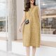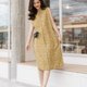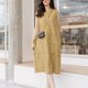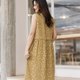 Linen sleeveless dress with polka dots, yellow and green. There is a detail on the back.