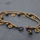 這是手工編織的腳鐲,用深棕色蠟線與圓形黃銅珠編織而成。用銅鐘封閉
