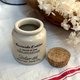 This is a charming French Delouis fils brand mustard stoneware jar, produced in Champsac, France. The material is cream-colored glazed ceramic with a natural cork stopper. The body features the classic label indicating the use of cider vinegar, reflecting a mid-20th-century French country vintage style. It can be used as a decorative piece, small storage container, or mini vase, making it a collectible antique item.