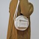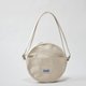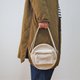 丸型の本体がまず目を惹きますが、特徴的なのはおそらく小物パーツや工具を入れるであろうフロントの張り出しポケットと、縁取りのパイピングコードです。