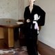 上下分體的套裝,兼具華美與得體,短外袍利落灑脫,垂順長褲勾勒慵懶且高貴的風姿,從臥室到客廳,從私享到社交,你的貴氣,無處不在。