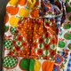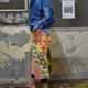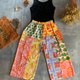 レトロな花柄やりんご柄のビンテージファブリックをパッチワークした賑やかで個性的なパンツです。