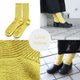 天然素材で快適 厚手リブ編みソックス  サステナブルなリサイクルコットン靴下(ライムイエロー) - 襪子 - 棉.麻 黃色