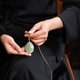 紅珠點綴如一點硃砂,系著的繩結纏繞著古韻,佩於身側,恰似把一汪澄澈的古意,釀成了隨身的風雅,每一次垂落,都是中式美學在光陰裡的淺唱低吟。