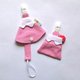 平安袋 奶嘴夾 奶嘴收納袋 組合 富士山 粉紅 - 平安符袋 - 棉.麻 粉紅色