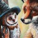 The unique painting of two witchy forest friends was painted with professional acrylic paints on a stretched cotton canvas. One of a kind. The plot is unique - how pretty the fox wearing a witchy hat, and the barn owl, too! This whimsical artwork is very detailed, forest-like, and filled with a wildlife spirit. It will bring an enchanted forest atmosphere to Home. Great gift for a nature and animal lover.