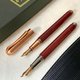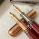 筆尖使用德國山羊BOCK#180(#5)小號玫瑰金鋼尖,經由老山羊職人手工研磨調整成書法尖,寫漢字捺撇轉折有加分作用,滑順好寫易出鋒,寫出獨特的毛筆字韻味。