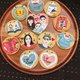 圓形每片大約直徑6公分,大愛心直徑約7-7.5公分,厚度0.6~1公分(餅乾+糖霜),