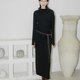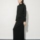 品牌一直偏愛長款的連衣裙,上身輕松有型又有風格感;半高領的領型,簡約有氣質,上衣不對稱的落肩,上身後更隨意有型,選用坑條竹節的針織面料,讓一條黑色的連衣裙變的輕松和日常,無需費力的穿著搭配。