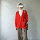 尋寶古著-英倫風格紅色設計感肩線開襟針織外套 - 女毛衣/針織衫 - 棉.麻 紅色