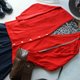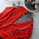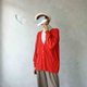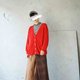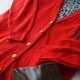 尋寶古著-英倫風格紅色設計感肩線開襟針織外套