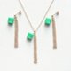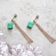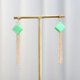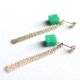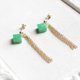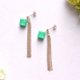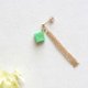 光沢のあるエメラルドグリーンのキューブとゴールドのフリンジが耳元で揺れる様子が可憐なピアス。