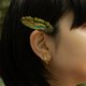 木の実に見立てたブラウンのカットガラスが耳元でキラリと輝き、華やかさを演出。