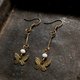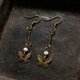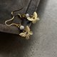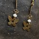 電鍍金色蝴蝶墜飾、扁橢型角面白水晶、電鍍金耳勾