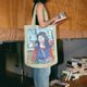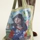 超大尺寸單肩包,水彩繪畫效果的白眼女孩,另外一面為線稿圖,一包兩背