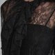 襯衫的主要材質是黑色蕾絲,帶有精緻的花卉圖案